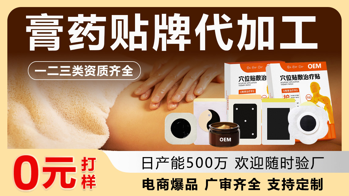 案例:为某连锁药店定制“肩颈舒缓贴”,添加三七、透骨草等成分,针对久坐人群痛点,上市3个月复购率达38%,带动门店同类产品销量增长210%。