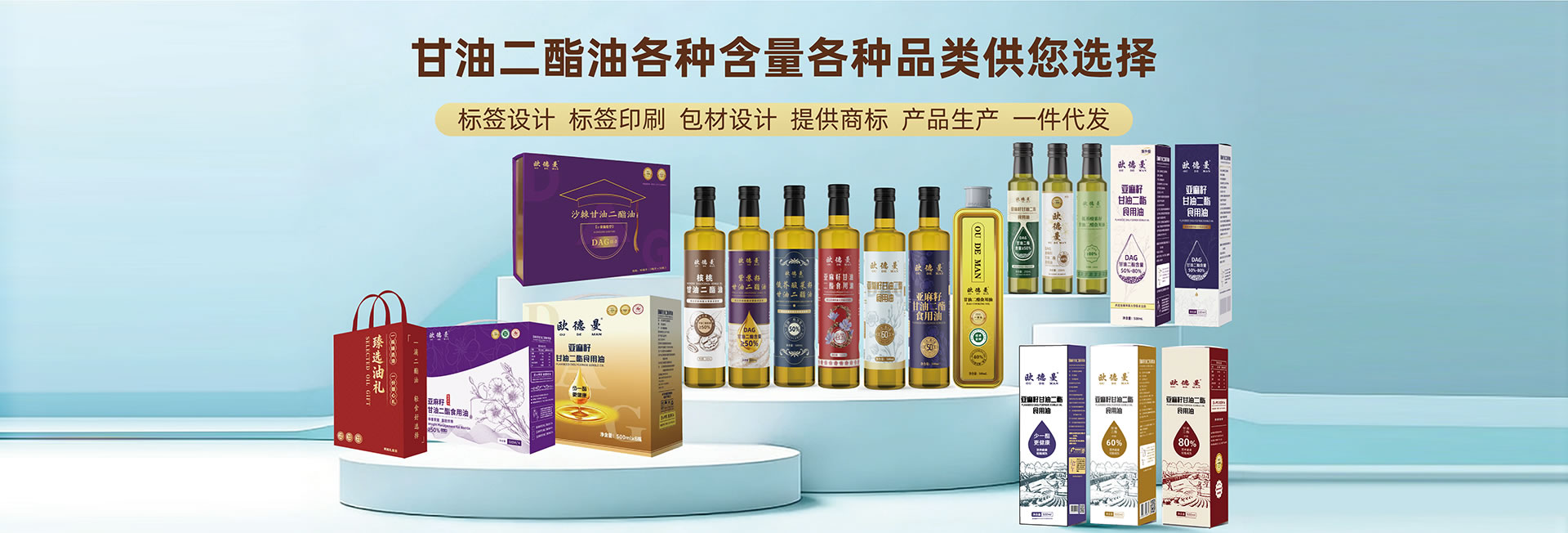产品介绍:我们提供覆盖多品类、多含量、多规格的甘油二酯油一站式代工服务,囊括亚麻籽甘油二酯油、紫苏籽甘油二酯油,核桃油甘油二酯油等品类,支持甘油二酯含量≥40% 、 ≥50% 、≥80% ,匹配各种含量的多元包装规格,同时配套品牌包装设计与代储代发供应链服务,助力品牌高效打造差异化甘油二酯油产品矩阵。