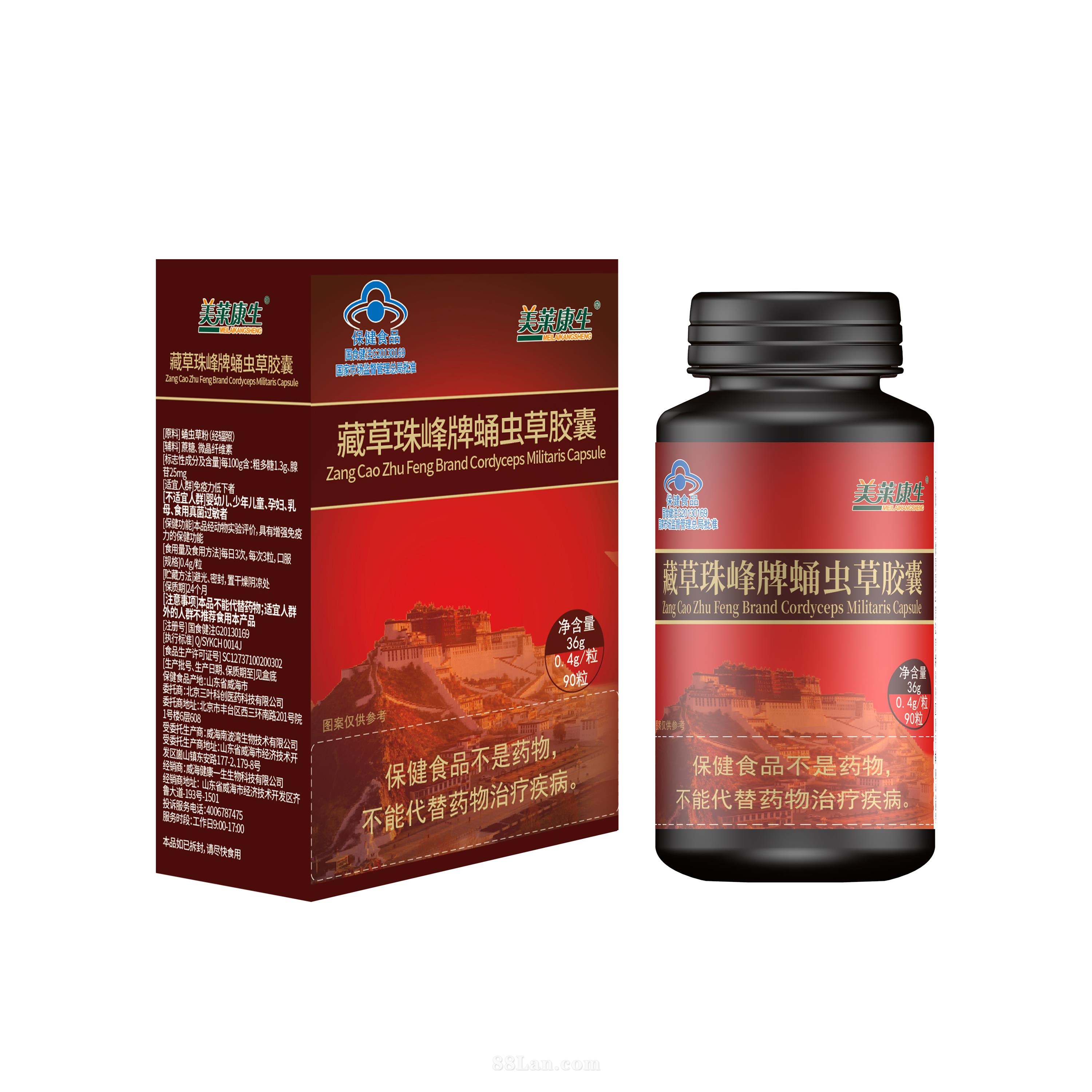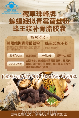 藏草珠峰牌蝙蝠蛾拟青霉菌丝粉蜂王浆补骨脂胶囊