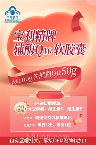 宝利精牌辅酶Q10 软胶囊(50g高含量辅酶)OEM贴牌定制