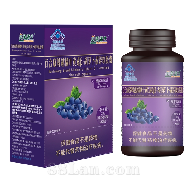 百合康牌越橘叶黄素β-胡萝卜素锌软胶囊
